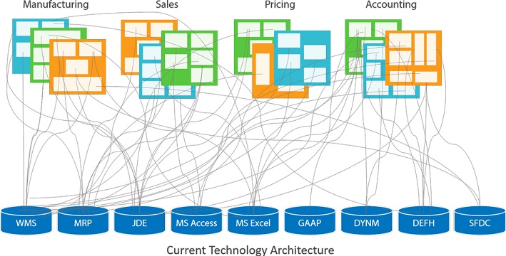 Situations like the one pictured are the result of processes that are generated in an ad-hoc, unplanned manner. They can grow exponentially over time. But efficient, cost-effective, maintainable integration systems occur only by design. Stakeholders need timely access to their data, business partners need secure methods for data exchange, legacy systems need to communicate seamlessly with newer platforms. There are many options for creating well-designed integrations. We are happy to discuss these options with our clients in depth.